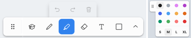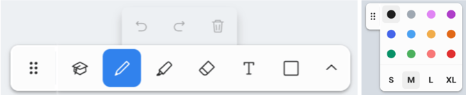 Deze toolbar bevat zes standaardtools waarmee je tijdens de les kunt werken, zoals schrijven, markeren en tekenen.