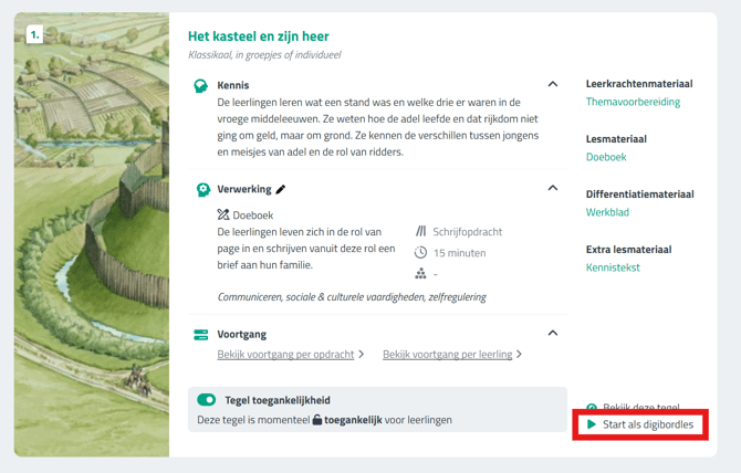 De pennentools zijn alleen beschikbaar wanneer je een tegel opent via de knop ‘Start als digibordles’. Het is dus echt voor jou als leerkracht. Zodra je een tegel op deze manier opent, verschijnt er een toolbar in beeld.